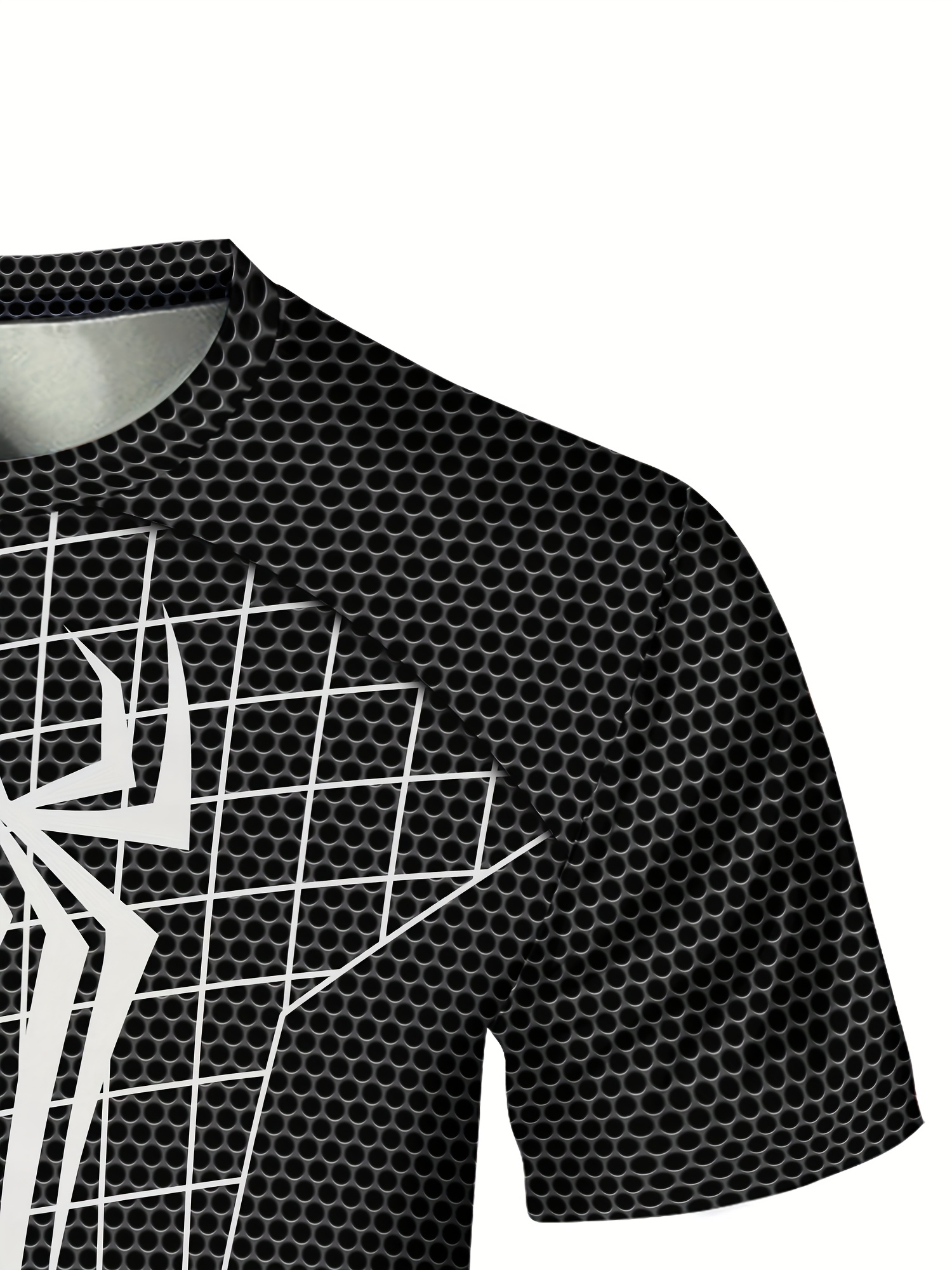 Built for summer workouts and outdoor activity, this tee combines high-elastic knit fabric with a bold geometric spider-web print for a strong, contemporary look.